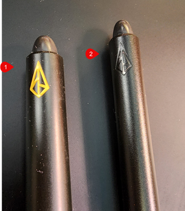 The image below shows how to tell a first-generation pen from a V2 pen.